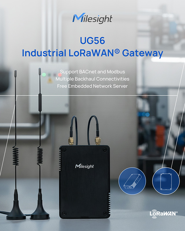 Das Milesight UG56 ist ein leistungsstarkes 8-Kanal LoRaWAN® Gateway für den Innenbereich. Es nutzt den SX1302 LoRa-Chip sowie einen energieeffizienten Quad-Core-Prozessor und unterstützt die Anbindung von über 2000 Endgeräten. Mit einer Reichweite von bis zu 15 km (Sichtverbindung) bzw. etwa 2 km in städtischer Umgebung eignet sich das Gateway ideal für Anwendungen in Smart Buildings, Industrieumgebungen und weiteren IoT-Szenarien im Innenbereich. UG56 lässt sich flexibel über Ethernet, WLAN oder Mobilfunk anbinden und bringt zusätzlich integrierte Netzwerkserver wie TTI und ChirpStack mit – inklusive Milesight IoT Cloud und integriertem Network Server für eine unkomplizierte Inbetriebnahme.