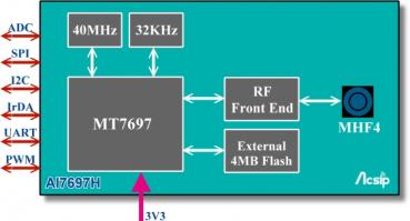 AcSiP bietet mit dem AI7697H ein hochintegriertes SIP-Modul mit einem Anwendungsprozessor, einem stromsparenden 1x1 11n Single-Band Wi-Fi-Subsystem, einem Bluetooth-Subsystem und einer Energieverwaltungseinheit.