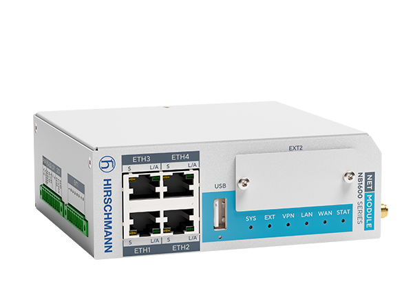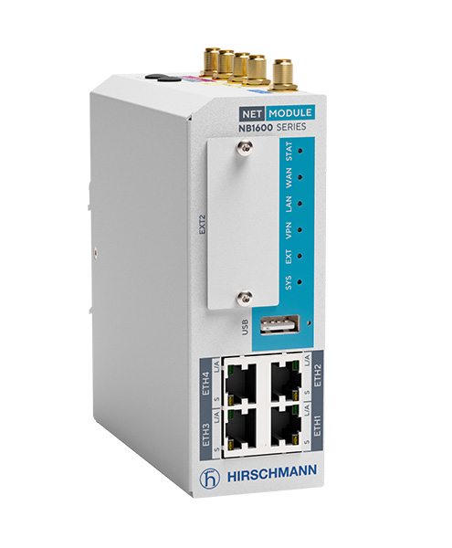Der NB1601 bietet die Schlüsseltechnologien für stationäre Anwendungen, die einen zuverlässigen Internetzugang benötigen. Der industrielle Router bietet als besonderes Feature gleich vier Ethernet-Ports, die in hohem Masse konfigurierbar sind. Zudem ist er mit digitalen I/O, seriellen Schnittstellen, einem USB 2.0-Port und einem GSM-R Modem ausgestattet