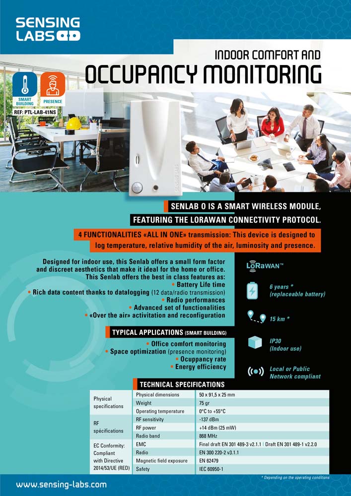 SENSING LABS, mit Sitz in Montpellier, wurde 2014 gegründet und ist ein Komplett-Lösungsanbieter speziell für IoT Lösungen und LoRaWAN™. Das Unternehmen entwirft, entwickelt und vertreibt Datenfernausleselösungen speziell für IoT-Netzwerke. Es bietet drahtlose Sensoriklösungen für B2B-Märkte an, die auf Energie- und Kosteneinsparungen ausgerichtet sind und konzentriert sich dabei auf Anwendungen aus den Segmenten: Intelligente Gebäude, Smart Metering für Wasser & Gas, smarte Agrarwirtschaft, sowie Smart Industry. Die von Sensing Labs entwickelten IoT Senlab Sensors kombinieren Hardware, Firmware und Software und lassen sich einfach und schnell in eine endgültige End-to-End-Lösung integrieren. Mit IoT-Lösungen von Sensing Labs werden Kosten reduziert, neue - bis lang nicht verfügbare Daten – geschöpft und deren Datenerfassung vereinfacht.